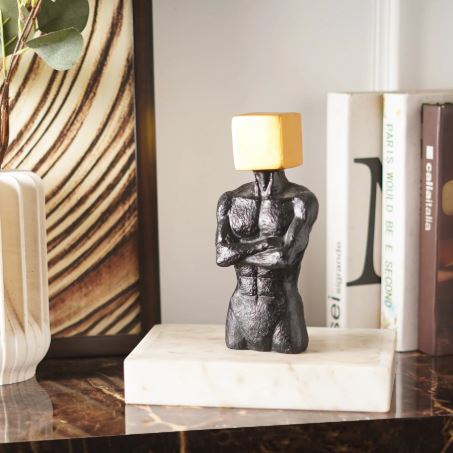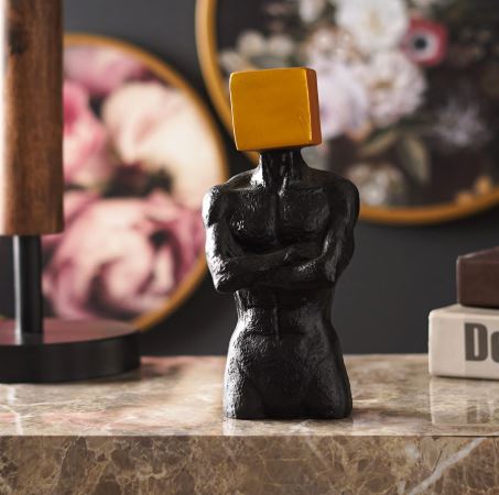 Intricate Detailing: This stunning statue boasts a meticulously sculpted muscular body with a rough stone-like texture, exuding a sense of strength and rugged elegance. The black shine finish enhances the visual impact.