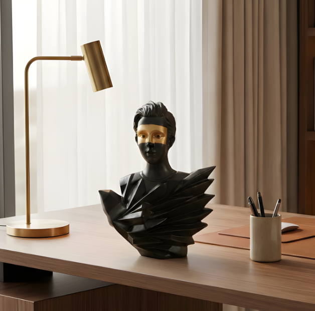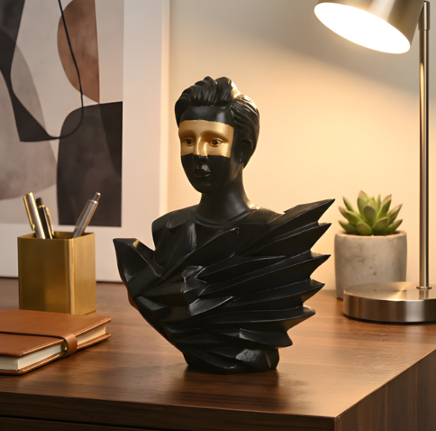 Hand-crafted for homes that value depth over decoration. This contemporary sculpture blends a bold matte-black form with subtle gold accents, symbolising quiet strength, individuality, and balance.