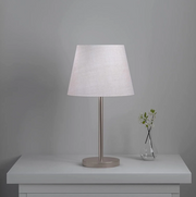 This elegant table lamp with a sleek black finish is designed to enhance the aesthetics of your home or office while offering the perfect amount of reading light. Its polished satin nickel finish and sturdy construction give it a sophisticated look that complements various interior styles. The cotton flex lampshade provides diffused illumination, creating a warm and inviting atmosphere in any room. The lamp features a heavy base for stability and a convenient 2-meter wire with an in-built on/off switch for easy use.