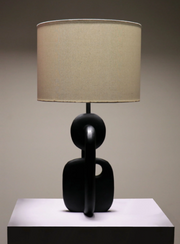NOVUM: With its simple but also breathtaking silhouette, the NOVUM balances functionality in an artfully sculpted lamp. The geometric lines build on the sculptural essence of the Novum Table Lamp, which creates a powerful expression. The foot is carved from metal, while the shade is cast in off white linen.
