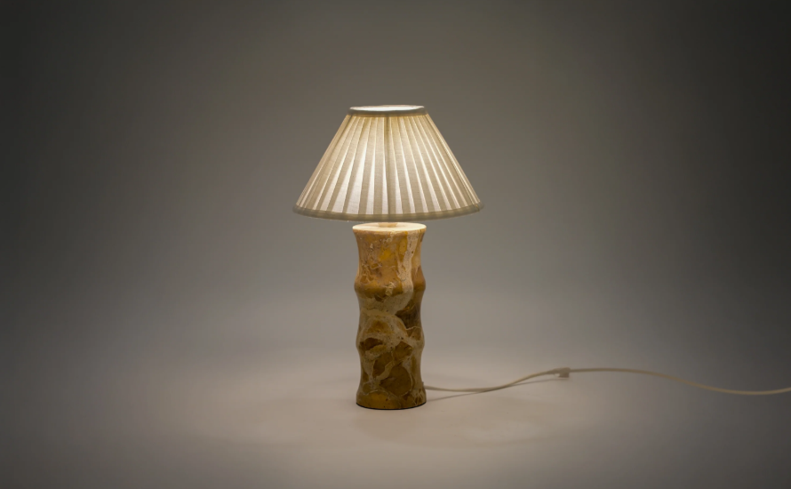 A soft pleated shade meets a carved stone base in the Halo Small Table Lamp. This charming piece brings texture, warmth, and timeless form to layered bedside styling.