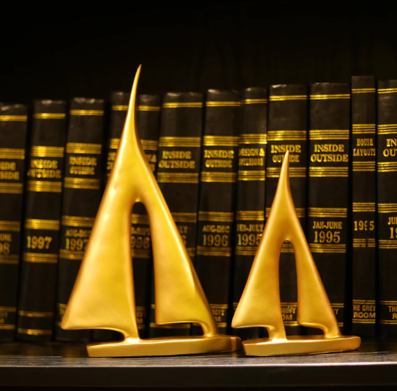 The name Gold Flair Sailboat positions the set as a dynamic icon of freedom and aspirational movement, defined by its luxurious, reflective gold finish.