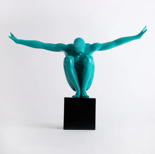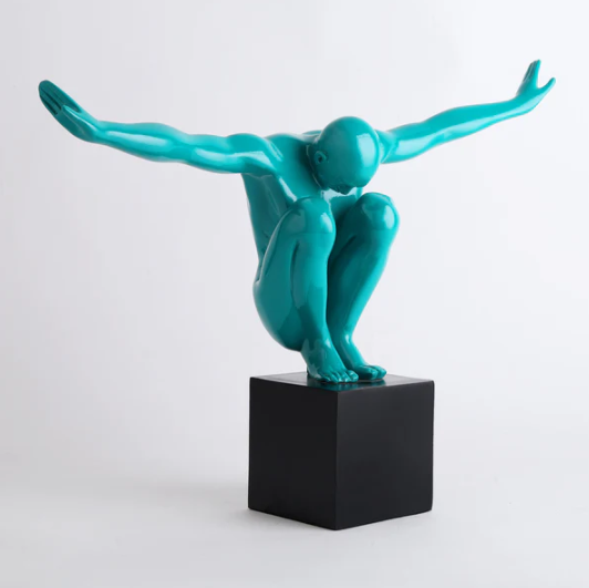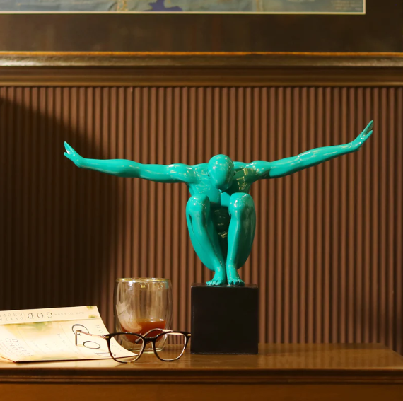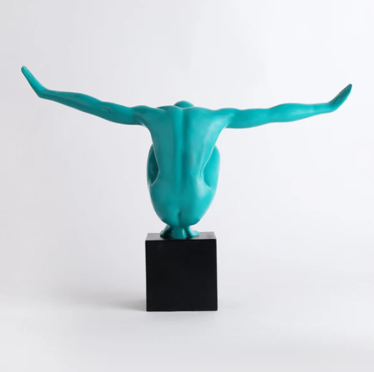 Bathed in a deep, polished emerald, the sculpture’s fluid musculature and smooth contours catch the light with a rhythmic grace, offering a sophisticated depth that feels both powerful and remarkably calm.