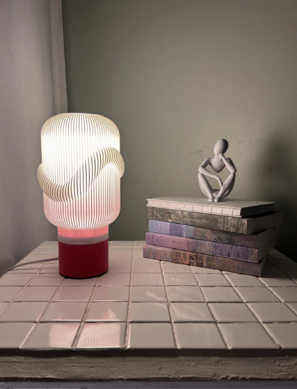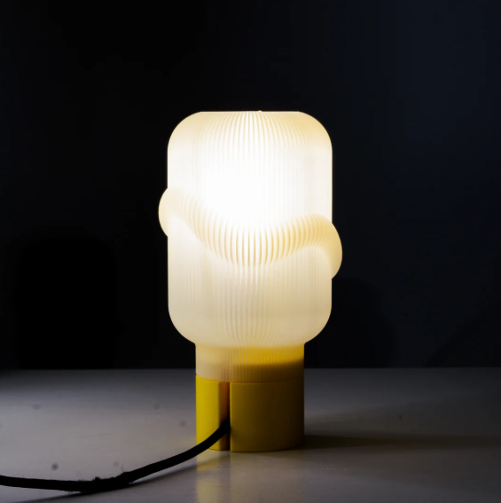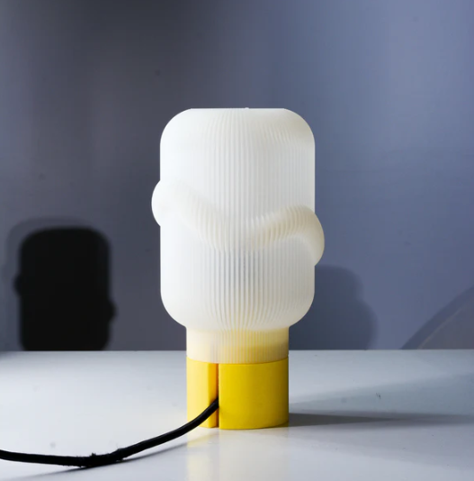 The Little Cloud 2 lamp is a modern and artistic table lamp with a sleek, cylindrical form. Its softly ribbed, frosted shade diffuses light beautifully, creating a warm and inviting glow. The sculptural curves on the shade add a unique, organic touch, resembling a floating cloud. Supported by a bold yellow base, this lamp brings a playful yet sophisticated charm to any space. Perfect for contemporary interiors, it serves as both a functional light source and a statement piece.