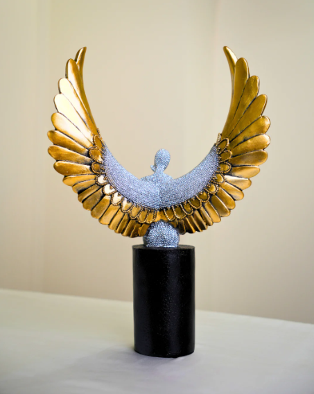 Introduce artful elegance into your home with this striking decorative statue. Standing tall with fluid lines and a dynamic posture, this piece brings an expressive presence to any shelf, console or display corner. Whether used in a modern living room, refined study or gallery-inspired space, this sculpture merges bold form with understated sophistication.